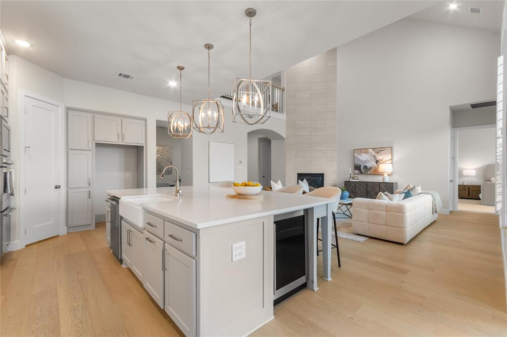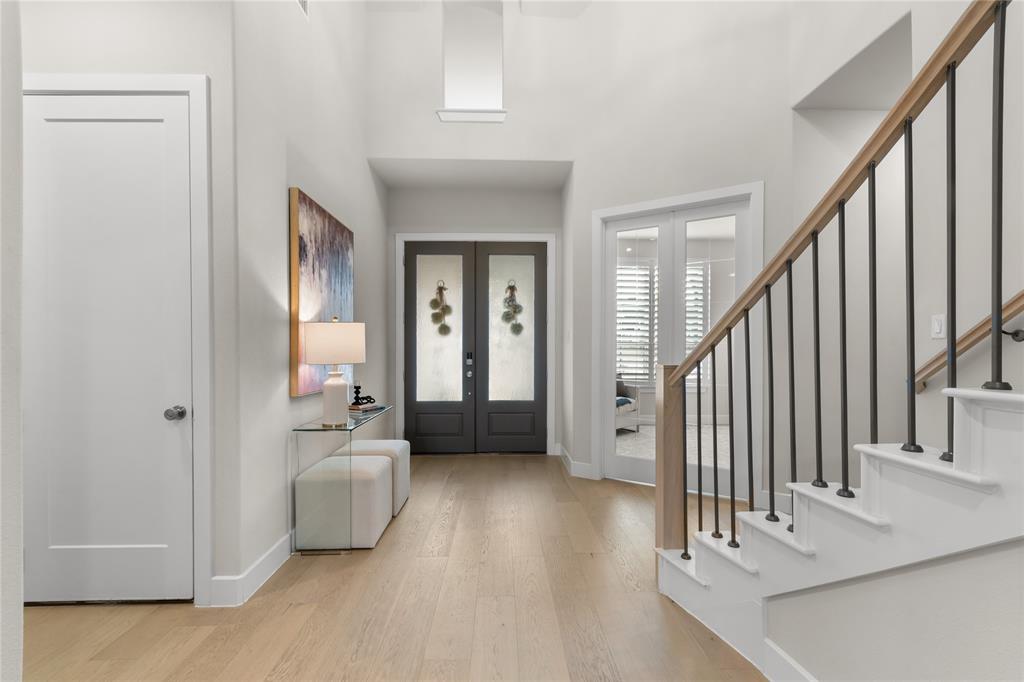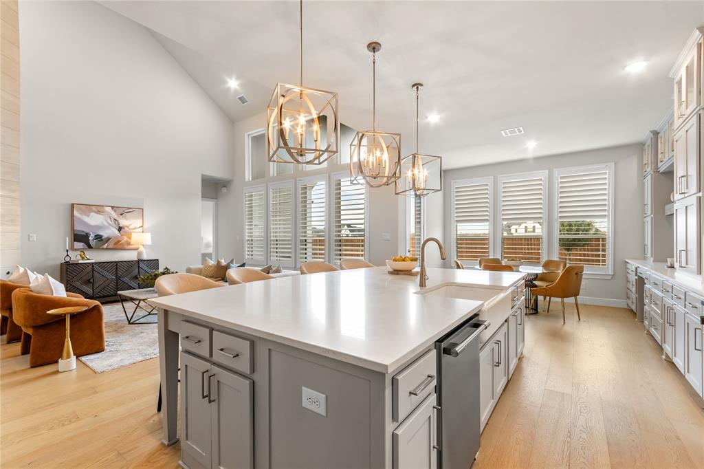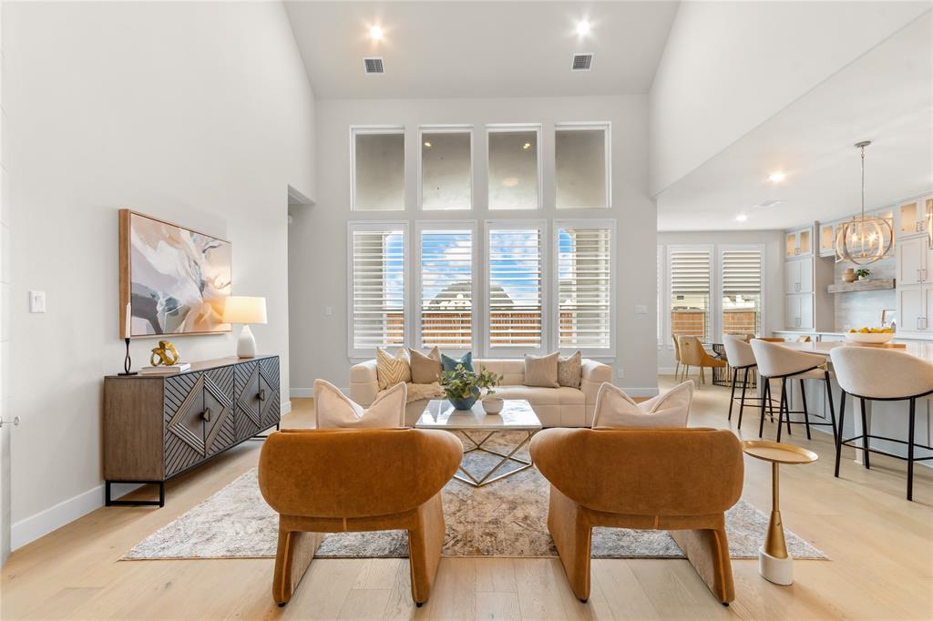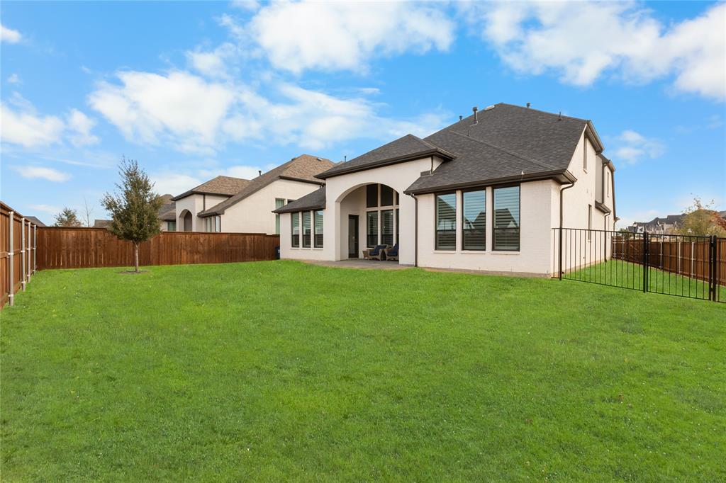 Experience elevated living in one of Celina’s premier master-planned communities, where thoughtful design and upscale finishes come together to create a home that is both sophisticated and welcoming. Perfectly positioned on a desirable homesite within Mustang Lakes, this corner lot residence offers a seamless blend of comfort, style, and functionality. The interior showcases expansive living spaces filled with natural light, enhanced by high ceilings, designer fixtures, and rich flooring details, including recently replaced carpet. The open-concept main living area flows effortlessly into a statement kitchen designed for both everyday living and entertaining, complete with an oversized island, high-end appliances, abundant cabinetry, and elegant surface selections. The owner’s suite provides a private retreat with a spa-like bath experience featuring dual vanities, a soaking tub, a spacious walk-in shower, and a custom closet built for organization and ease. A secondary primary on the first level makes for the perfect multigenerational home. Additional bedrooms and flexible living spaces offer versatility for guests, work-from-home needs, or entertainment, including dedicated areas for media and recreation. Outdoor living is poised for your design ideas whether it be a pool or an extended outdoor living space. Life in Mustang Lakes offers residents access to exceptional community amenities including resort-style pools, scenic lakes, miles of walking and biking trails, tennis courts, a fitness center, clubhouse, and beautifully maintained green spaces. The community is also served by highly regarded Prosper ISD schools, Johnson Elementary, Rogers Middle School and Walnut Grove High School, adding to the area’s long-term appeal. This is an opportunity to enjoy luxury construction, modern convenience, and community-centered living in one of North Texas’ fastest-growing and most desirable locations.