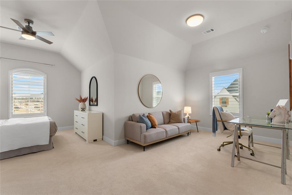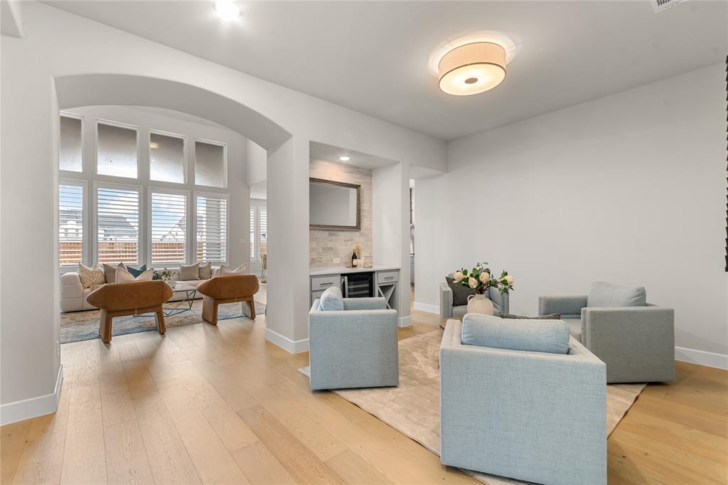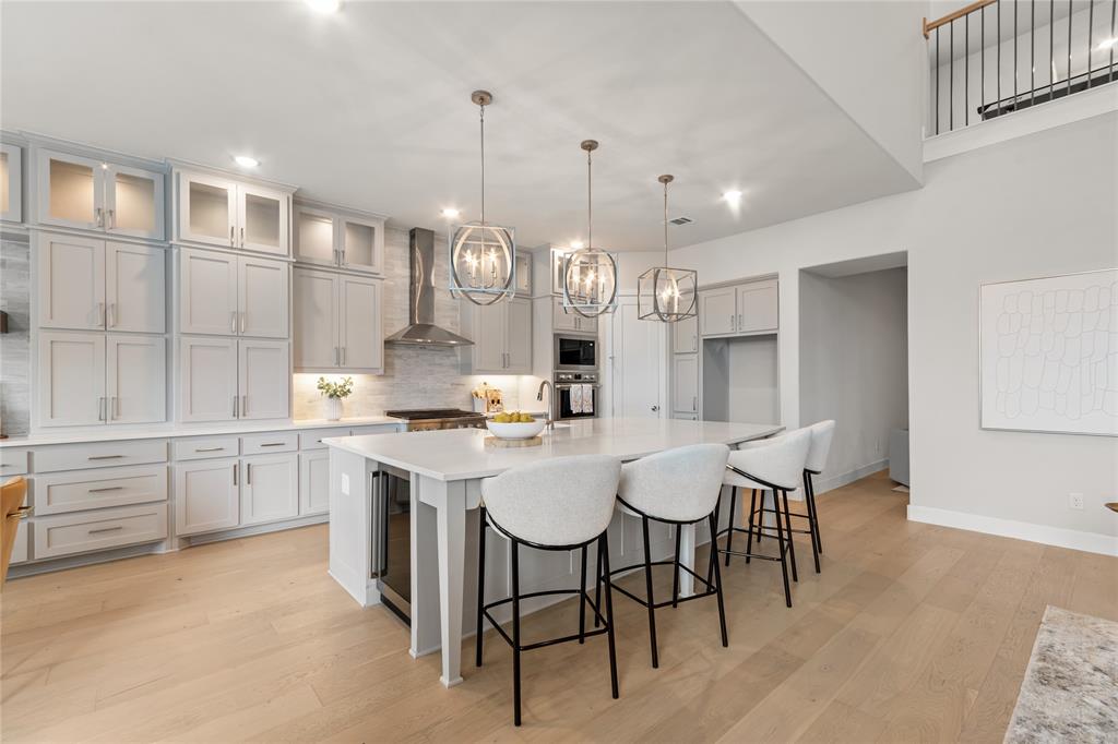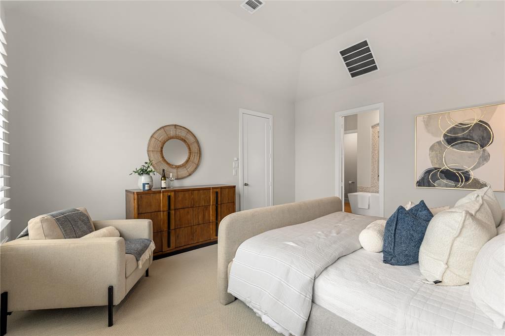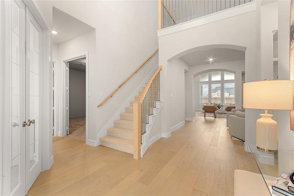 Experience elevated living in one of Celina’s premier master-planned communities, where thoughtful design and upscale finishes come together to create a home that is both sophisticated and welcoming. Perfectly positioned on a desirable homesite within Mustang Lakes, this corner lot residence offers a seamless blend of comfort, style, and functionality. The interior showcases expansive living spaces filled with natural light, enhanced by high ceilings, designer fixtures, and rich flooring details, including recently replaced carpet. The open-concept main living area flows effortlessly into a statement kitchen designed for both everyday living and entertaining, complete with an oversized island, high-end appliances, abundant cabinetry, and elegant surface selections. The owner’s suite provides a private retreat with a spa-like bath experience featuring dual vanities, a soaking tub, a spacious walk-in shower, and a custom closet built for organization and ease. A secondary primary on the first level makes for the perfect multigenerational home. Additional bedrooms and flexible living spaces offer versatility for guests, work-from-home needs, or entertainment, including dedicated areas for media and recreation. Outdoor living is poised for your design ideas whether it be a pool or an extended outdoor living space. Life in Mustang Lakes offers residents access to exceptional community amenities including resort-style pools, scenic lakes, miles of walking and biking trails, tennis courts, a fitness center, clubhouse, and beautifully maintained green spaces. The community is also served by highly regarded Prosper ISD schools, Johnson Elementary, Rogers Middle School and Walnut Grove High School, adding to the area’s long-term appeal. This is an opportunity to enjoy luxury construction, modern convenience, and community-centered living in one of North Texas’ fastest-growing and most desirable locations.